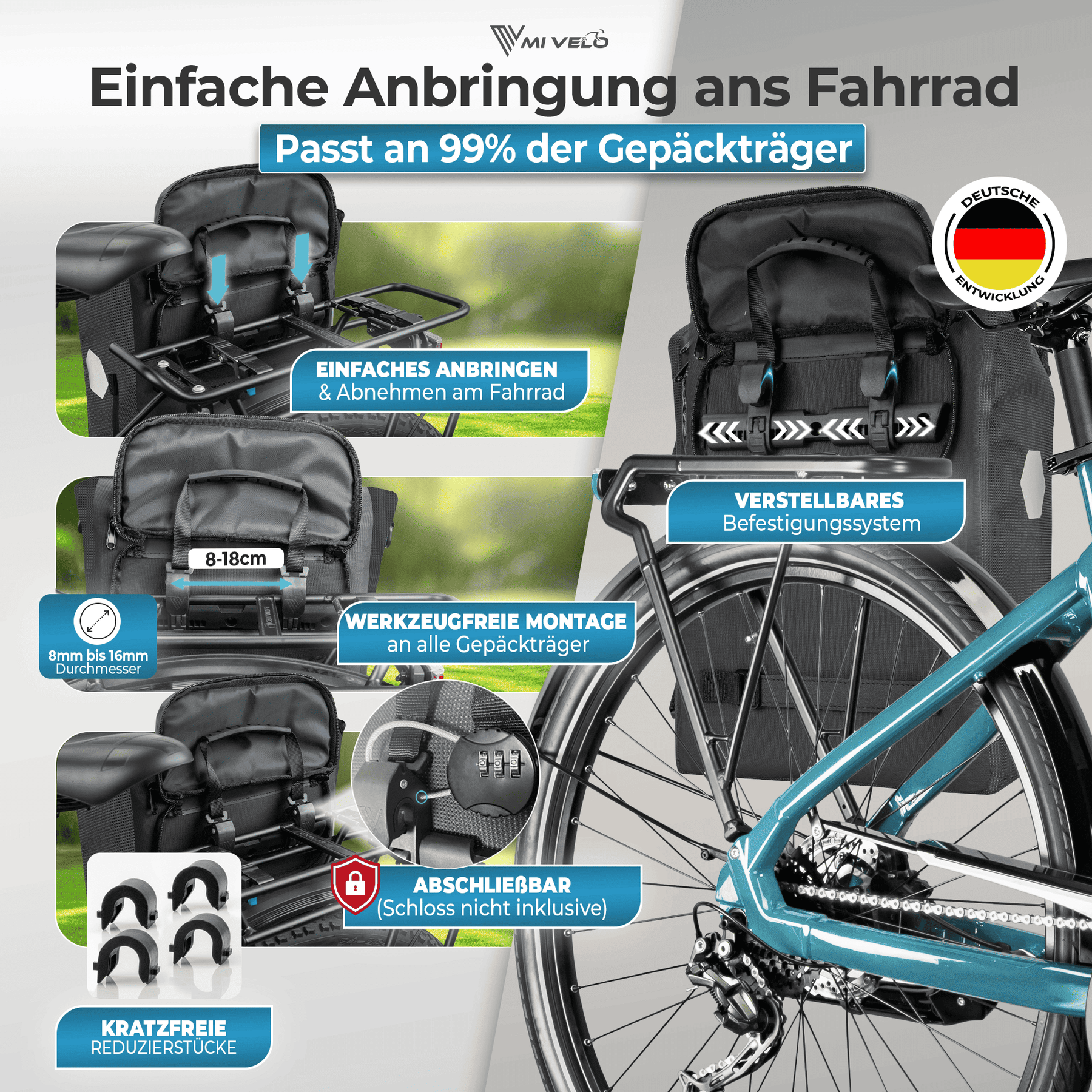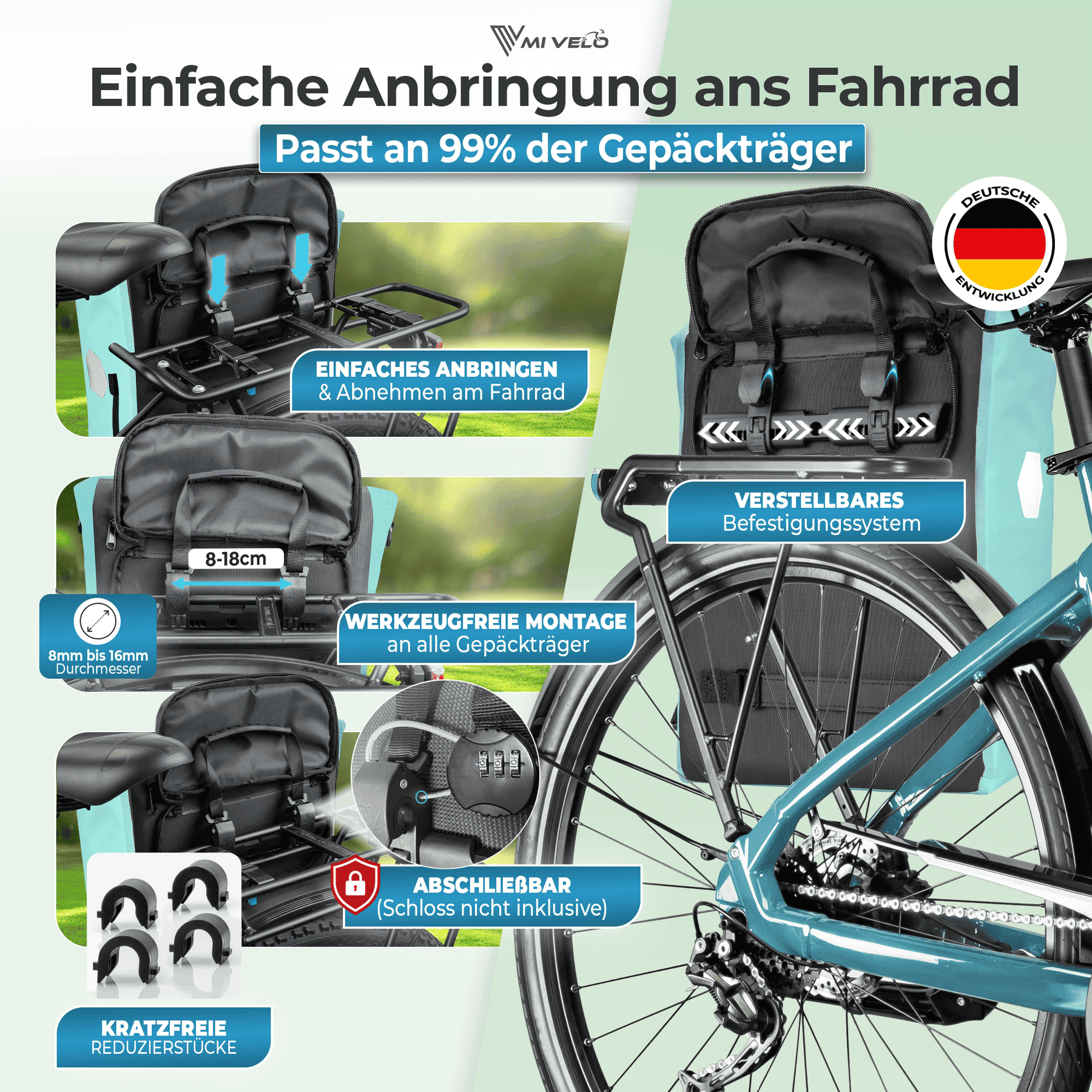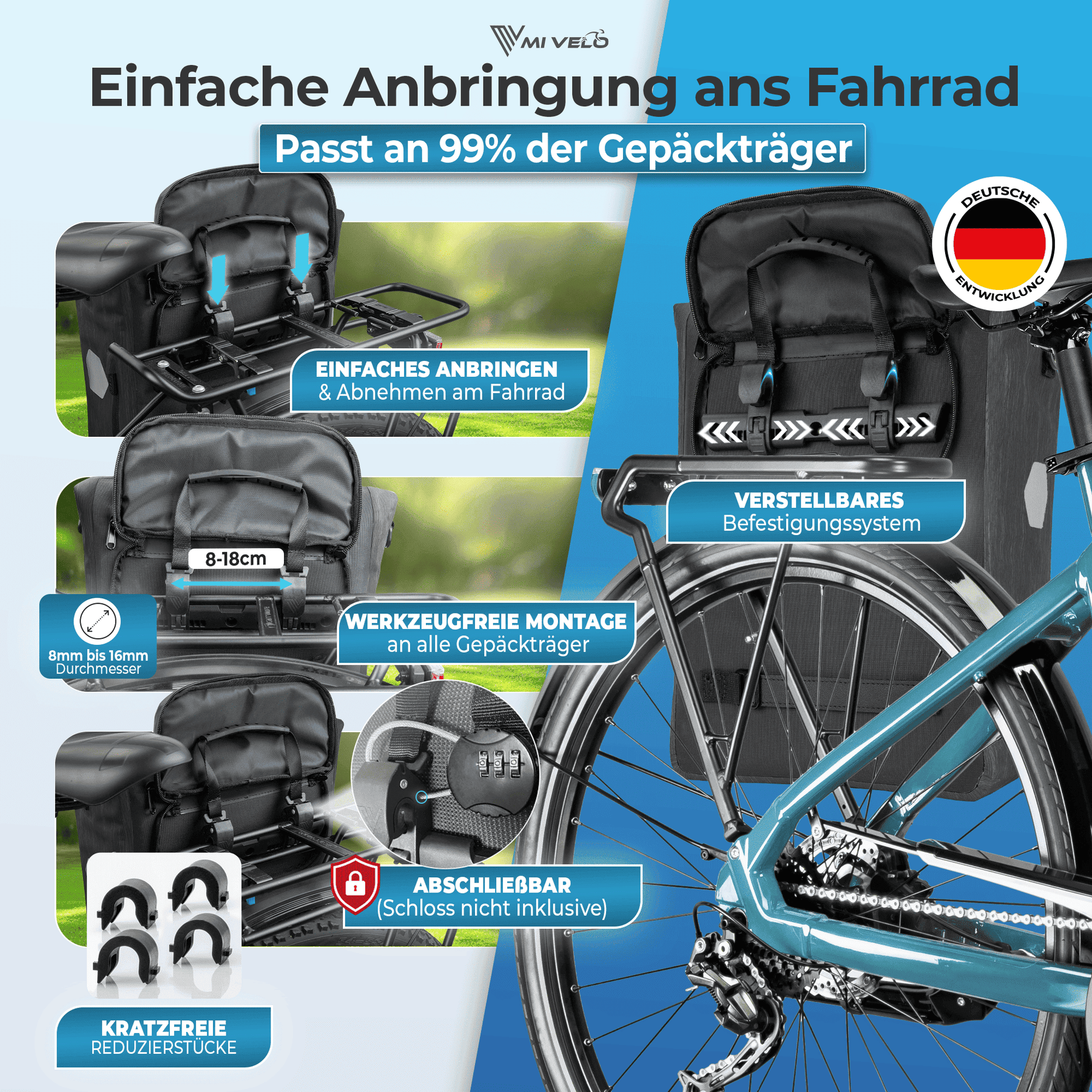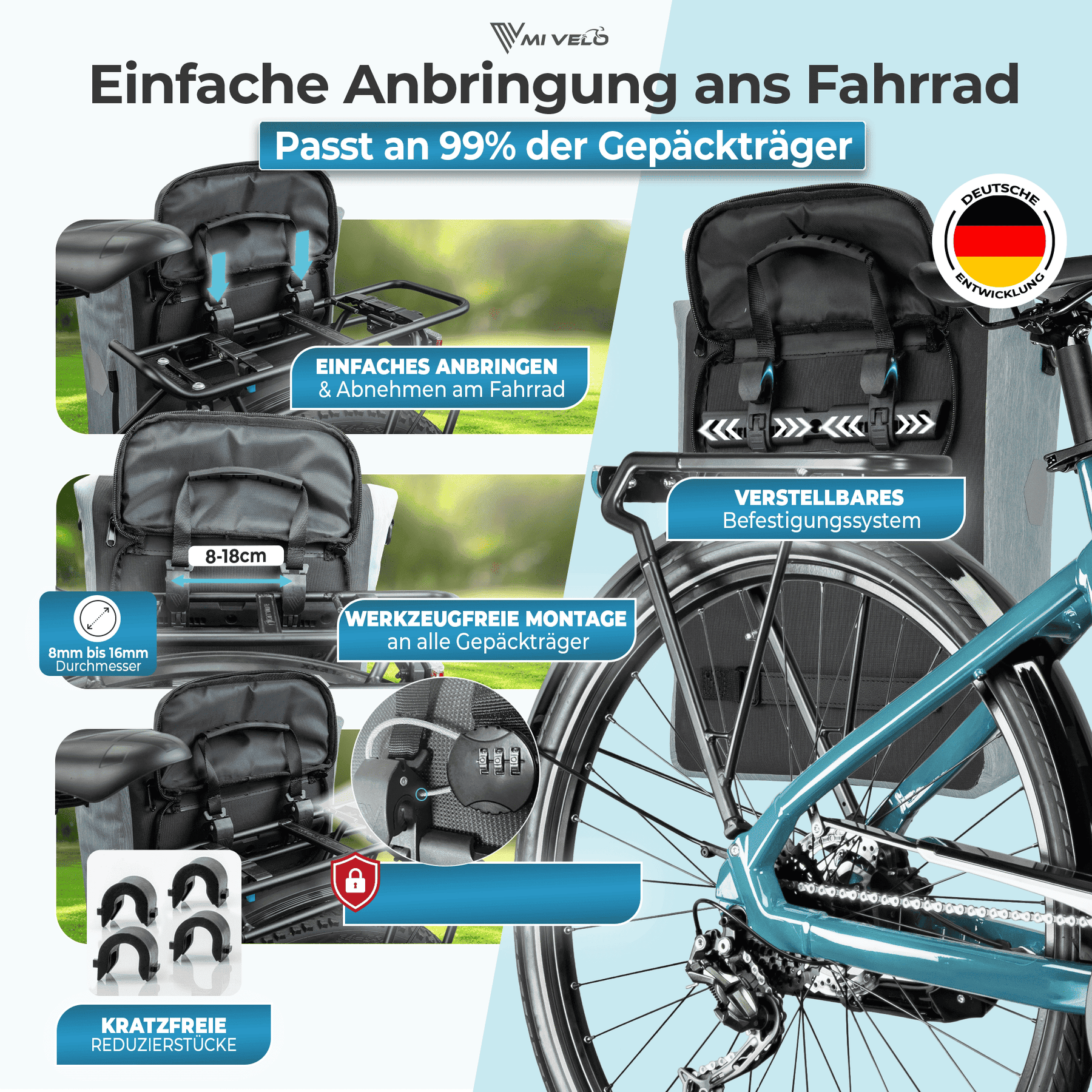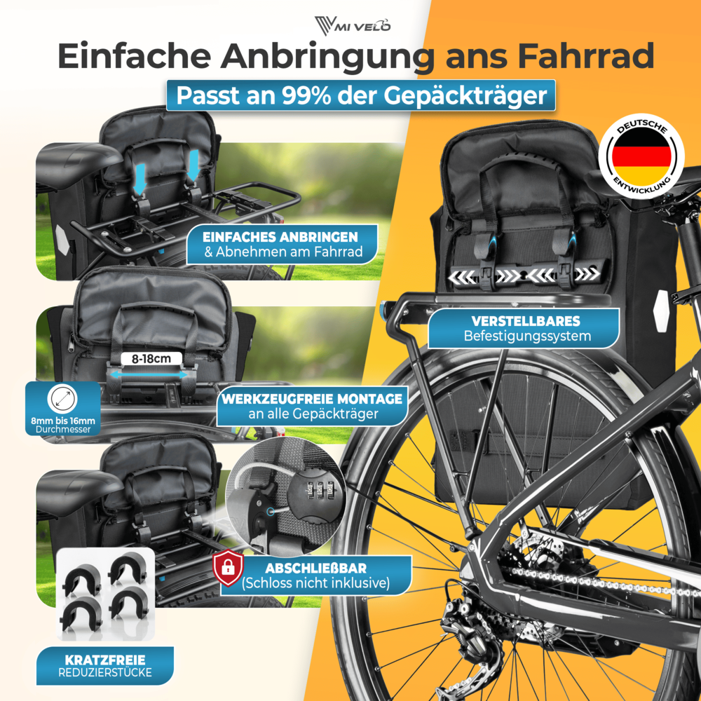 ganz ohne Werkzeug. Ideal für Alltag, Pendelstrecke oder Wochenendausflug.