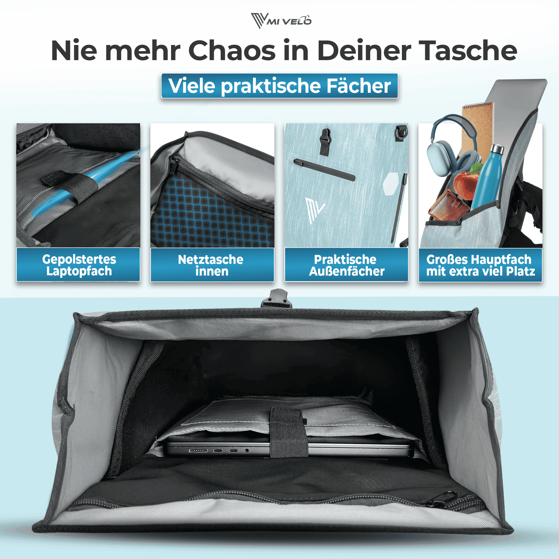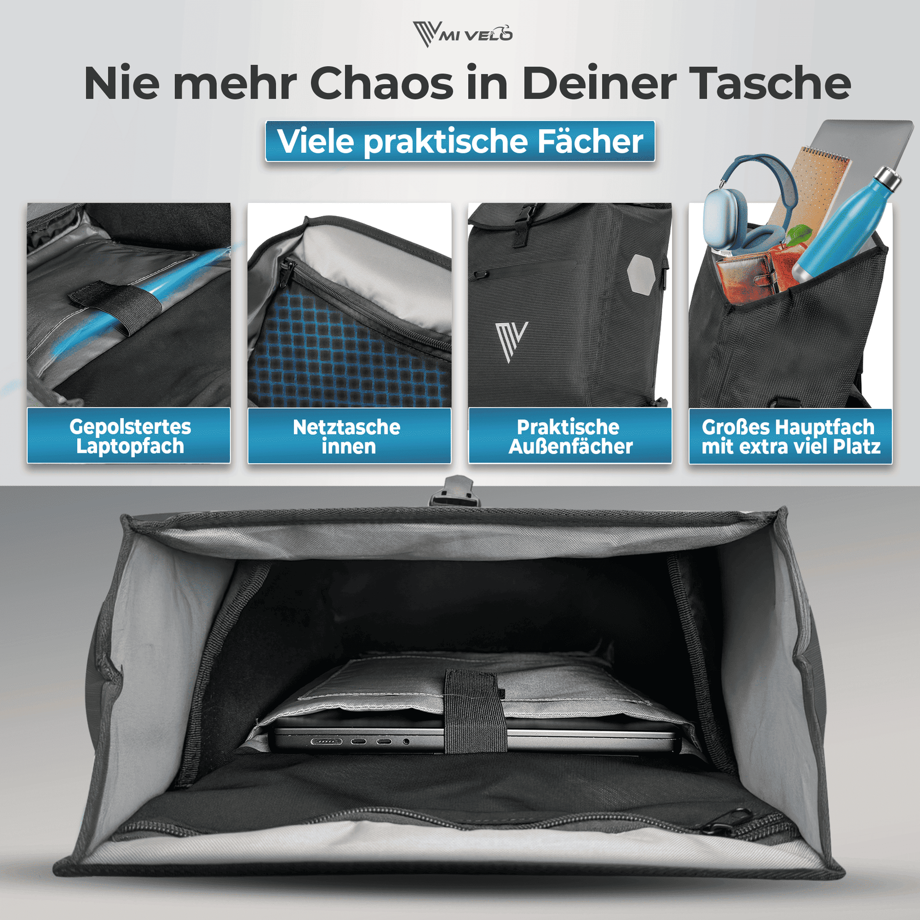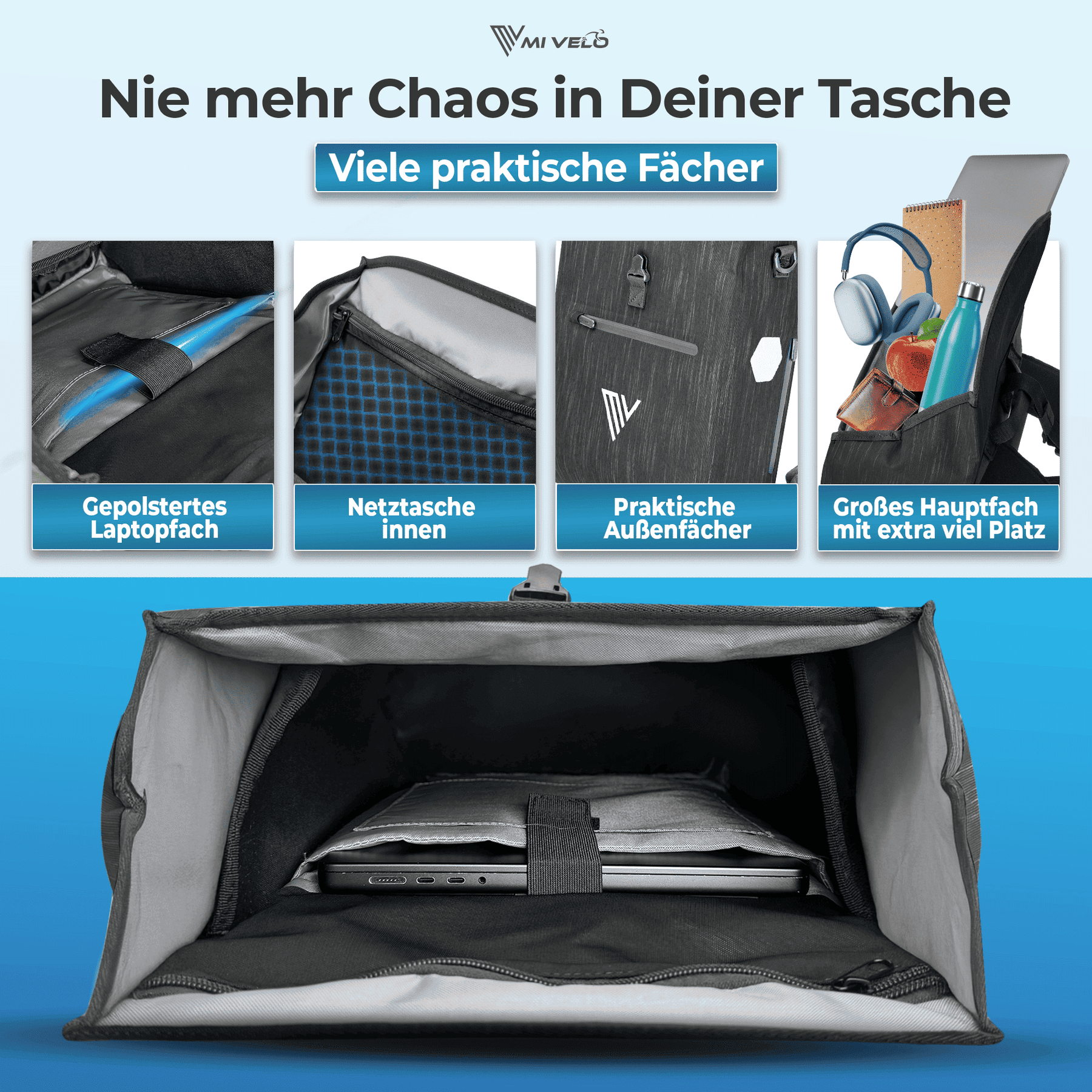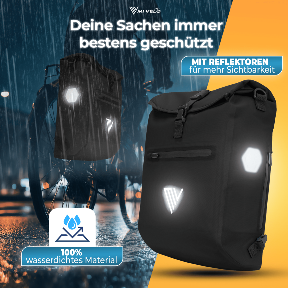 Gepäckträgertasche verfügt über ein großes Hauptfach mit praktischem